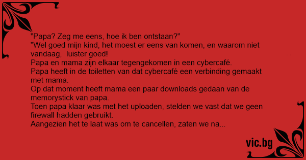 "Papa? Zeg me eens, hое ik ben ontstaan?"