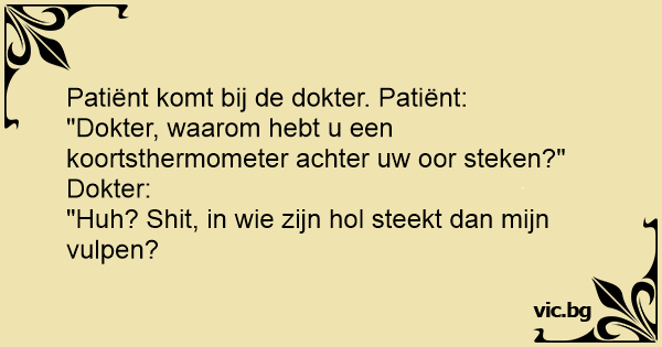 "Dokter, waarom hebt u een koortsthermometer achter uw oor steken?"