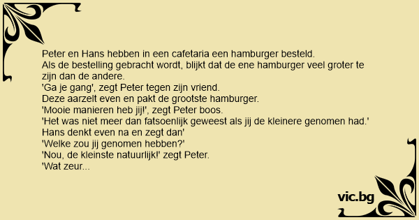 Peter en Hans hebben in een cafetaria een hamburger besteld.