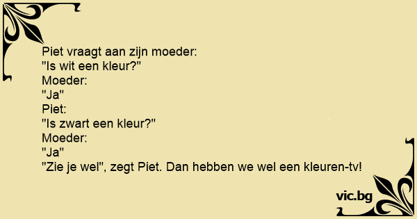 "Zie je wel", zegt Piet. Dan hebben we wel een kleuren-tv!