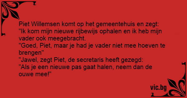 Piet Willemsen komt op het gemeentehuis en zegt: