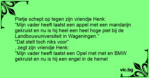"Mijn vader heeft laatst een Opel met met en BMW gekruist en nu is hij een engel in de hemel