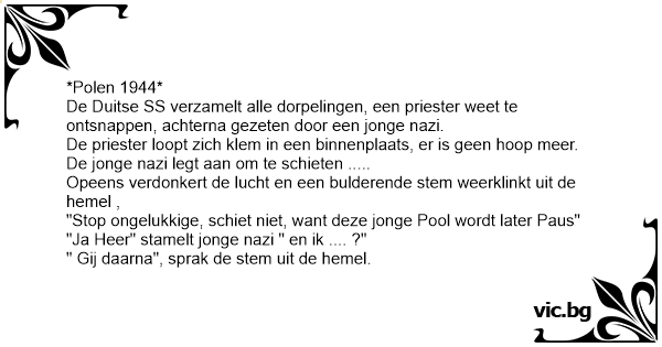 "Stop ongelukkige, schiet niet, want deze jonge Pool wordt later Paus"