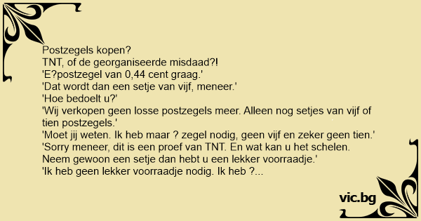 'Ik heb geen lekker voorraadje nodig. Ik heb ? zegel nodig voor ? brief.'