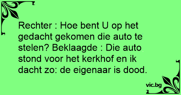 - Обвиняеми, защо откраднахте колата? - Ами тя беше пред гробището, мислех че е на някои умрял и не му трябва повече...