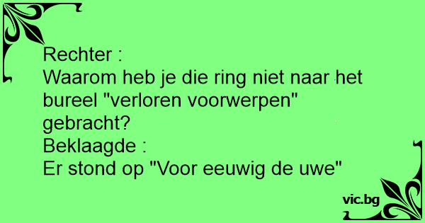 - Mamma, titta en sån fin guldring jag har hittat! - Men lilla gumman, den måste du lämna till polisen! - Nej inte alls, för det står - Din för evigt - i den!