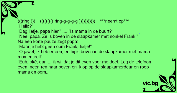 "Dag liefje, papa hier," .... "Is mama in de buurt?"