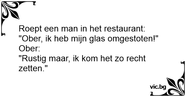 "Ober, ik heb mijn glas omgestoten!"