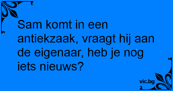Sam komt in een antiekzaak, vraagt hij aan de eigenaar, heb je nog iets nieuws?