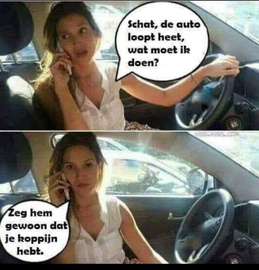 Schat, de auto loopt heet,...
