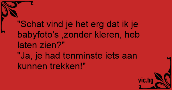"Schat vind je het erg dat ik je babyfoto's ,zonder kleren, heb laten zien?"
