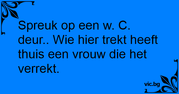 Spreuk op een w. C. deur.. Wie hier trekt heeft thuis een vrouw die het verrekt.
