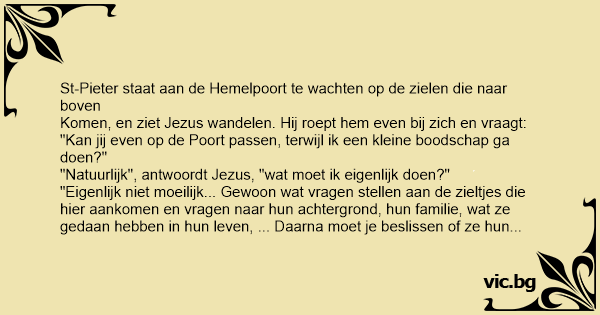 Dus Jezus staat te wachten aan de poorten terwijl St-Pieter zijn kleine boodschap gaat doen...