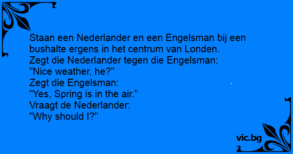 Zegt die Nederlander tegen die Engelsman: