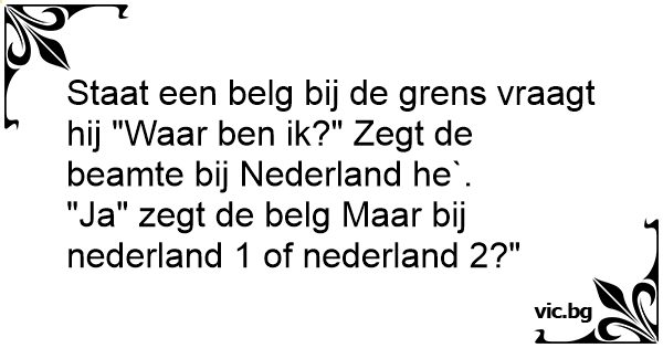 Staat een belg bij de grens vraagt hij "Waar ben ik?" Zegt de beamte bij Nederland he`.