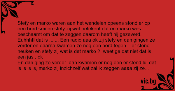 Stefy en marko waren aan het wandelen opeens stond er op een bord sеx en stefy zij wat betekent dat en marko was beschaamt om dat te zeggen daarom heeft hij gezeverd.