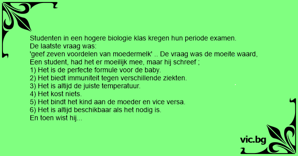 'geef zeven voordelen van moedermelk' .. De vraag was de moeite waard,