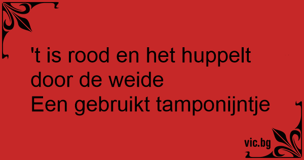 't is rood en het huppelt door de weide<br />Een gebruikt tamponijntje