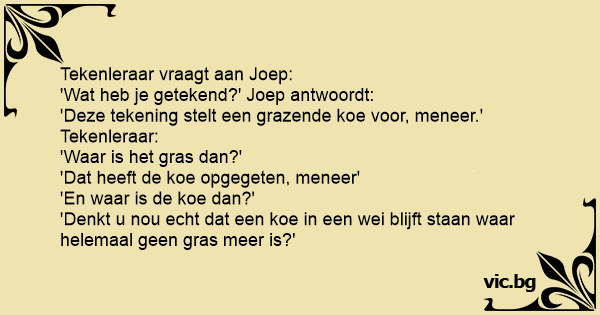 'Deze tekening stelt een grazende koe voor, meneer.' Tekenleraar: