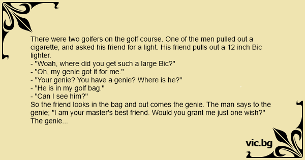 So the friend looks in the bag and out comes the genie. The man says to the genie; "I am your master's best friend. Would you grant me just one wish?"