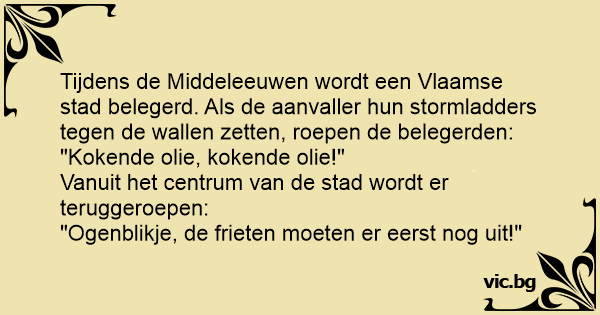 Tijdens de Middeleeuwen wordt een Vlaamse stad belegerd. Als de aanvaller hun stormladders tegen de wallen zetten, roepen de belegerden: