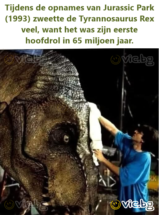 Podczas kręcenia filmu Jurassic Park (1993) tyranozaur Rex bardzo się pocił, ponieważ była to jego pierwsza główna rola od 65 milionów lat.