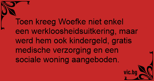 Toen kreeg Woefke niet enkel een werkloosheidsuitkering, maar werd hem ook kindergeld, gratis medische verzorging en een sociale woning aangeboden.