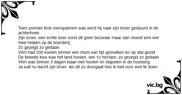 Toen premier Kok overspannen was werd hij naar zijn broer gestuurd in de achterhoek.