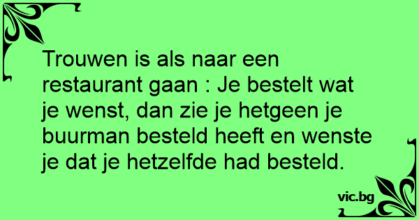 Trouwen is als naar een restaurant gaan : Je bestelt wat je wenst, dan zie je hetgeen je buurman besteld heeft en wenste je dat je hetzelfde had besteld.