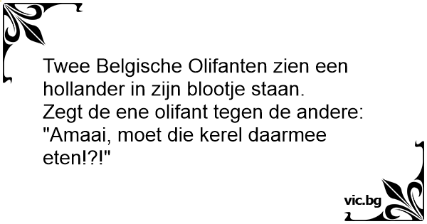 Twee Belgische Olifanten zien een hollander in zijn blootje staan.