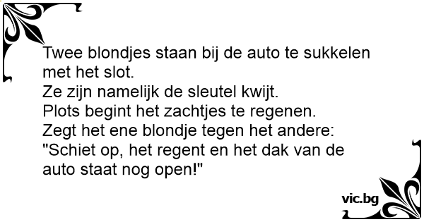 Det var en gang to blondine som var å handlet. Da de kom tilbake til bilen, fant de ut at nøklen var låst inne. De to blondinene sto der i mange timer for å prøve å få opp døren, men til ingen...