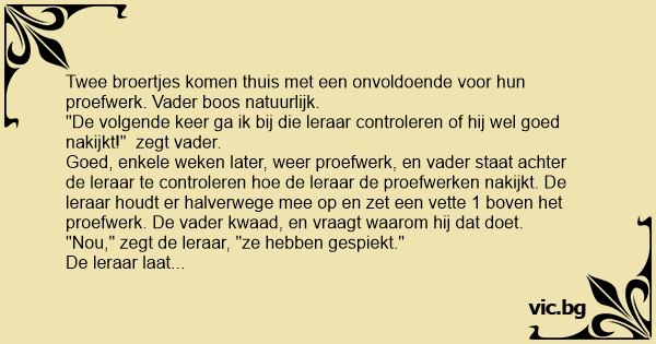 "De volgende keer ga ik bij die leraar controleren of hij wel goed nakijkt!" zegt vader.