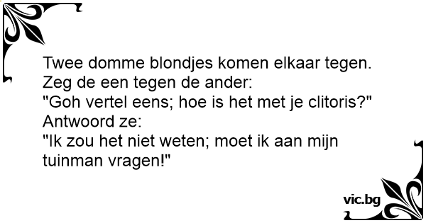 Twee domme blondjes komen elkaar tegen. Zeg de een tegen de ander: