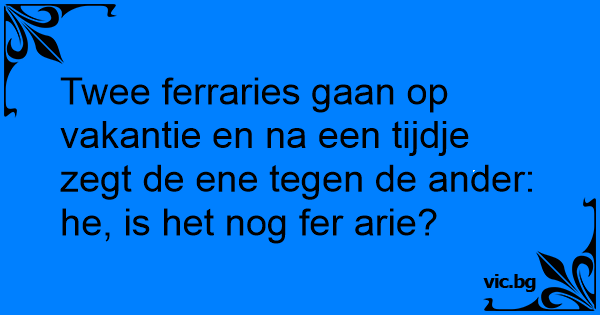 Twee ferraries gaan op vakantie en na een tijdje zegt de ene tegen de ander: he, is het nog fer arie?