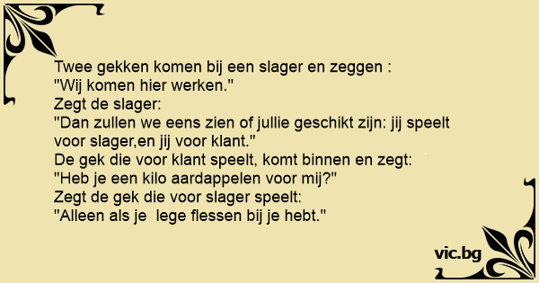 Twee gekken komen bij een slager en zeggen :