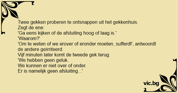 Vijf minuten later komt de tweede gek terug.