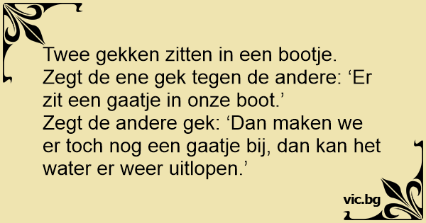 Zegt de andere gek: ‘Dan maken we er toch nog een gaatje bij, dan kan het water er weer uitlopen.’