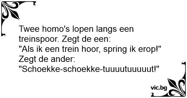Twee hомо's lopen langs een treinspoor. Zegt de een: