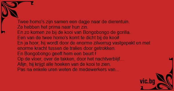 Twee hомо's zijn samen een dagje naar de dierentuin.
