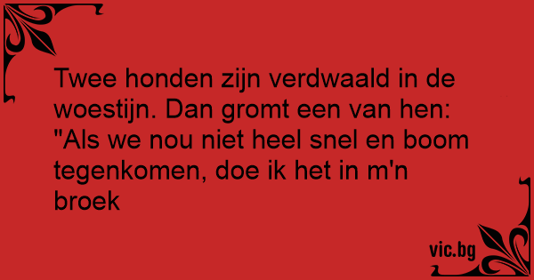 Twee honden zijn verdwaald in de woestijn. Dan gromt een van hen: