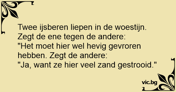 Twee ijsberen liepen in de woestijn. Zegt de ene tegen de andere: