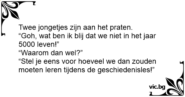 “Stel je eens voor hoeveel we dan zouden moeten leren tijdens de geschiedenisles!”