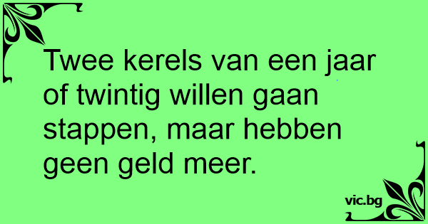 Twee kerels van een jaar of twintig willen gaan stappen, maar hebben geen geld meer.