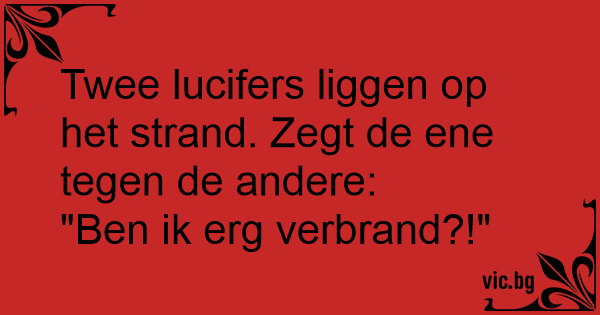 Twee lucifers liggen op het strand. Zegt de ene tegen de andere: