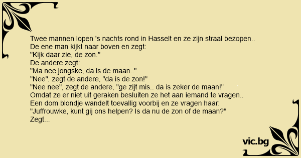 "Nee nee", zegt de andere, "ge zijt mis.. da is zeker de maan!"