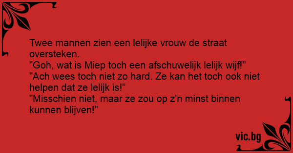 "Goh, wat is Miep toch een afschuwelijk lelijk wijf!"