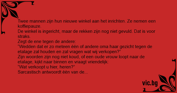 “Wedden dat er zo meteen één of andere oma haar gezicht tegen de etalage zal houden en zal vragen wat wij verkopen?”