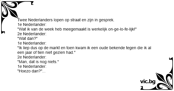 "Ik liep dus op de markt en toen kwam ik een oude bekende tegen die ik al een jaar of tien niet gezien had."