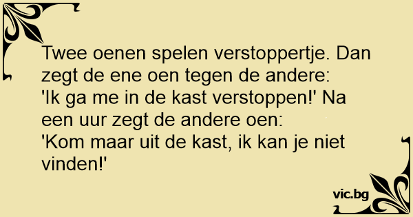 Twee oenen spelen verstoppertje. Dan zegt de ene oen tegen de andere: