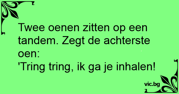 Twee oenen zitten op een tandem. Zegt de achterste oen: